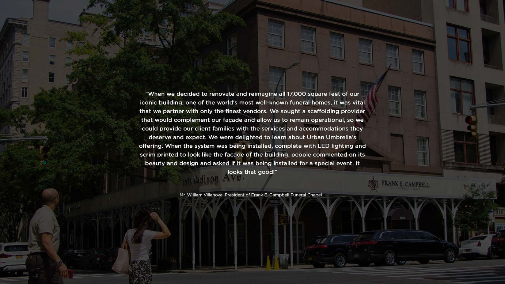 “Urban Umbrella allowed us to keep our outdoor restaurant seating open during construction, otherwise who is eating dinner under traditional scaffolding?”